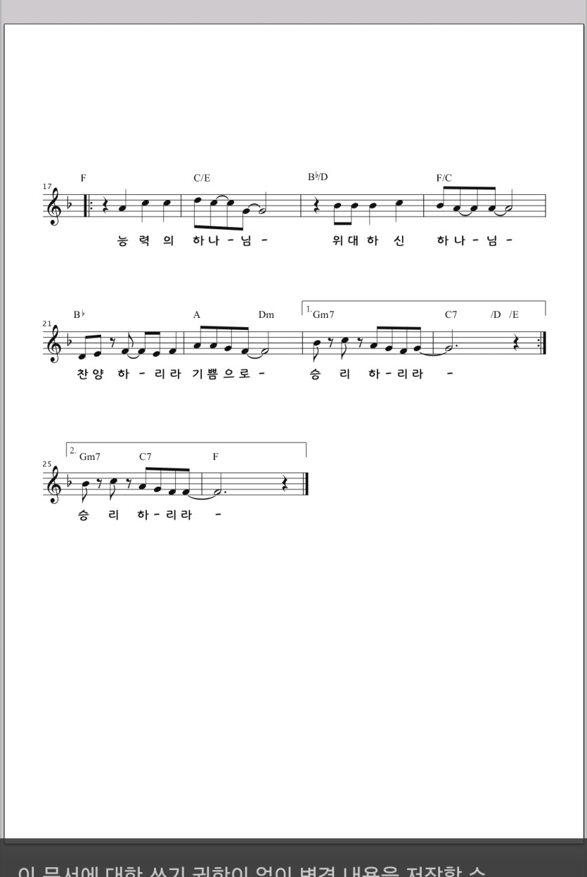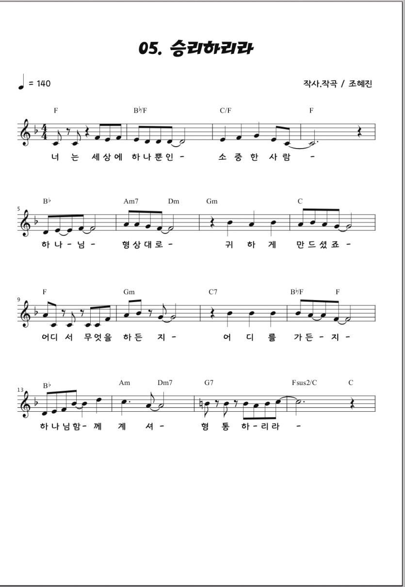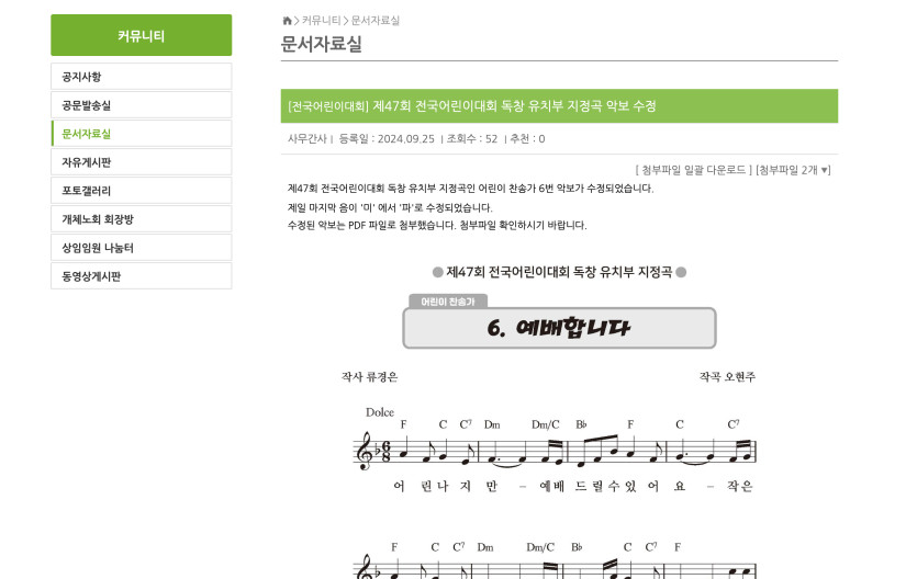 어린이대회 지정곡 악보 수정 정보 (예배합니다) (승리하리라) 하늘누리 어린이대회 0 755 2024.10.05 16:15 샬롬~어린이대회 지정곡 악보 수정 정보를 올려 드립니다.하기 2곡 악보 중 일부 수정이 있습니다.[예배합니다] [승리하리라]해당 내용을 참고 하시어 준비 바랍니다.