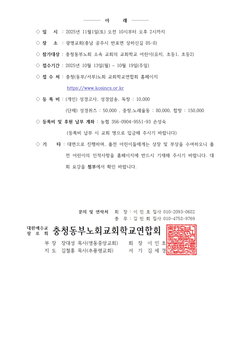 2023년 충청동부노회 교사세미나 및 총회 안내