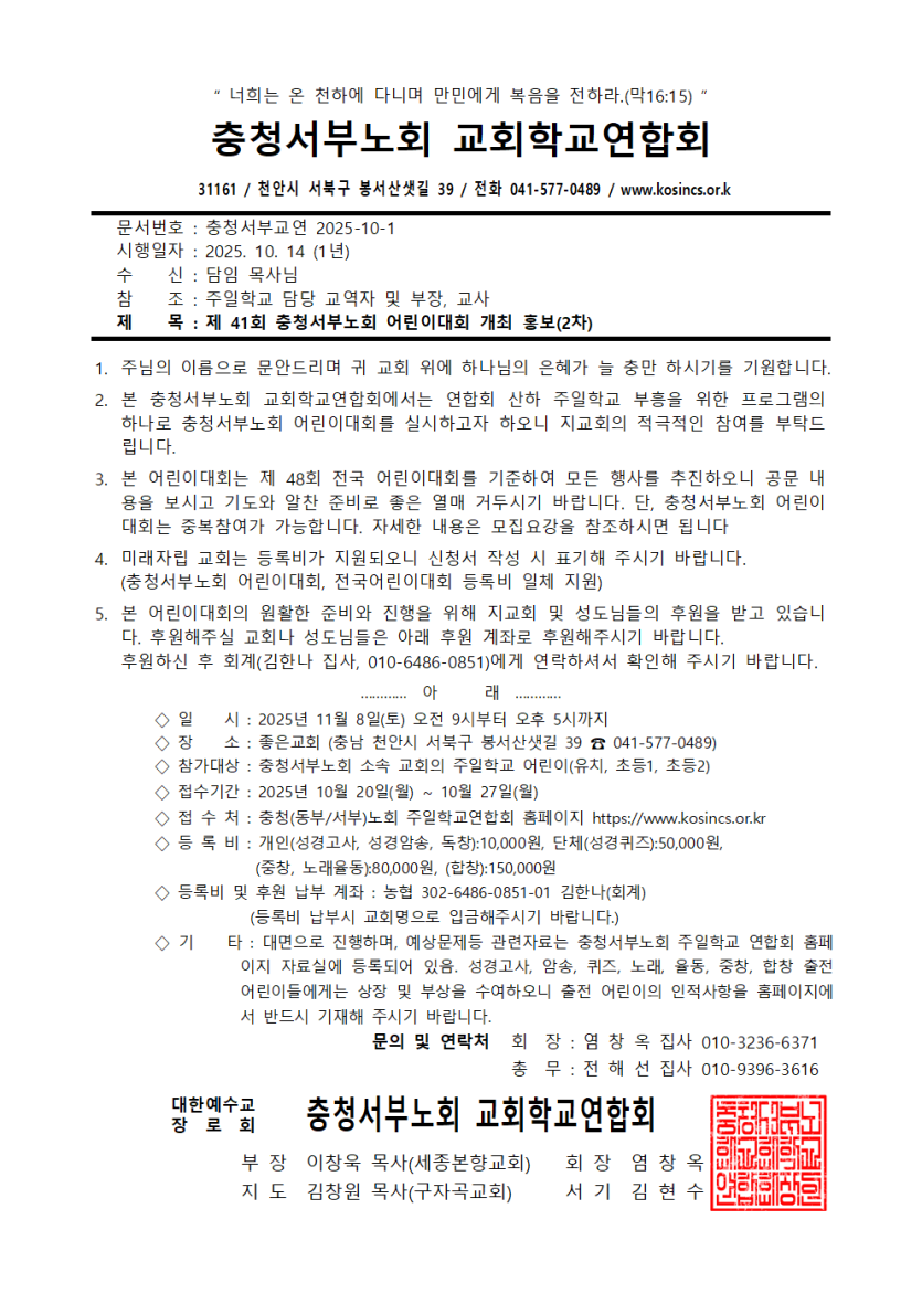 2023년 충청동부노회 교사세미나 및 총회 안내